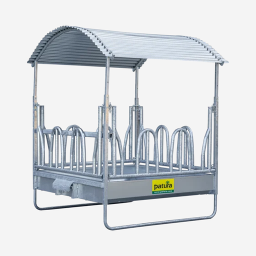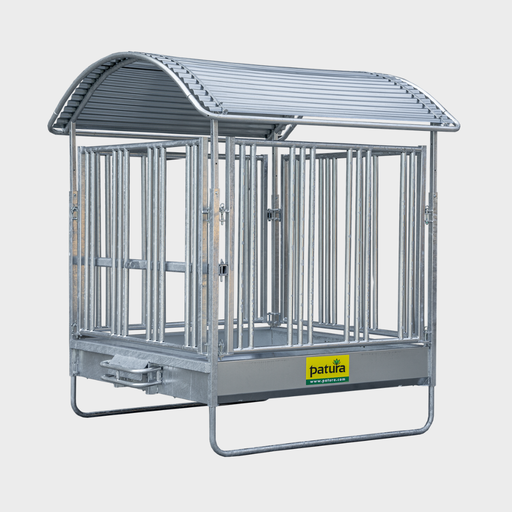 Profi-Viereckraufe mit Universalfressgitter und Dach