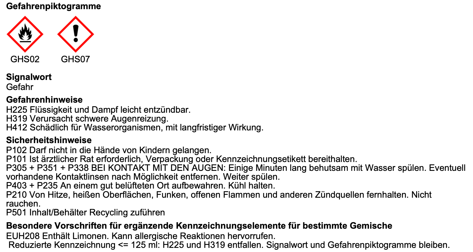 - Sicherheit: Kontakt mit Augen vermeiden. Für Kinder unzugänglich aufbewahren.
