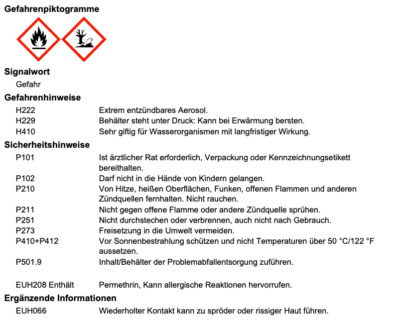 - Sofortige Wirkung: austreibend, lähmend und unmittelbar tödlich gegen Wespennester und Ameisen